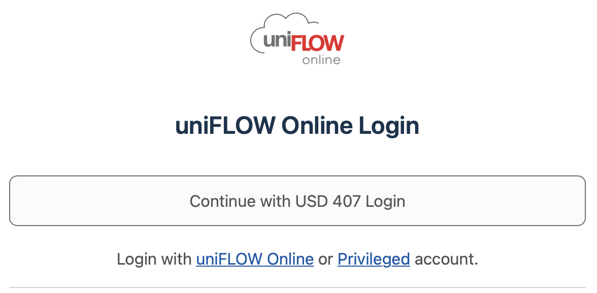 Go to https://print407.us.uniflowonline.com/ and click on Continue with USD 407 Login.