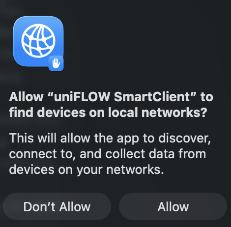 The installer may ask to find devices on local network. Select Allow.
